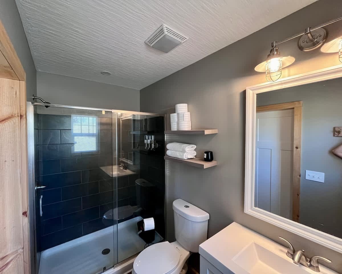 The Treetop looks over five acres of woods. Downtown Logan and Lancaster are a short distance further. Whether you step outside, or stay in, we hope your stay is memorable .